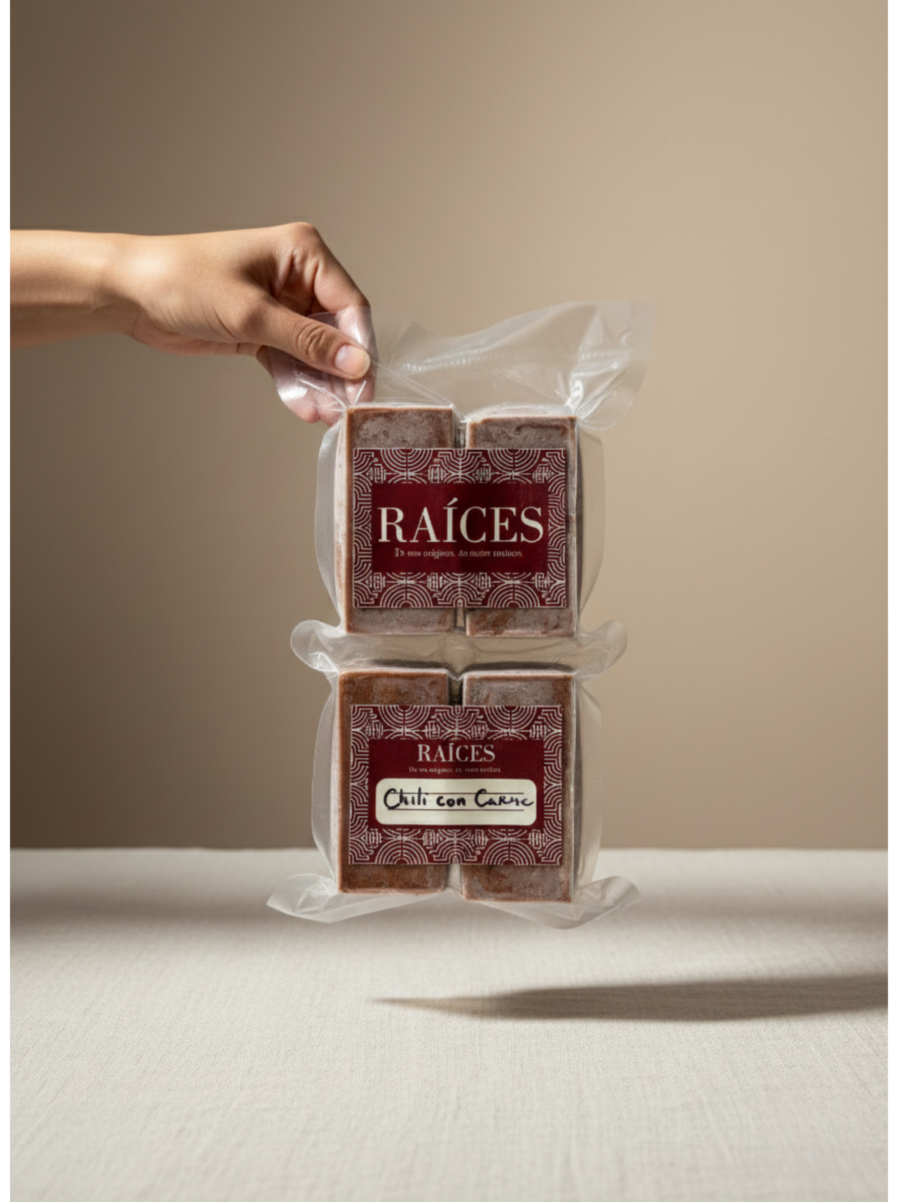 Ground Beef, Beans, Corn, Onions, Peppers, Celery, Tomatoes, Lemon, Soy Sauce, Chipotle, Cumin, Paprika, Cocoa, Pepper, Salt, Starch, Bayleaf.